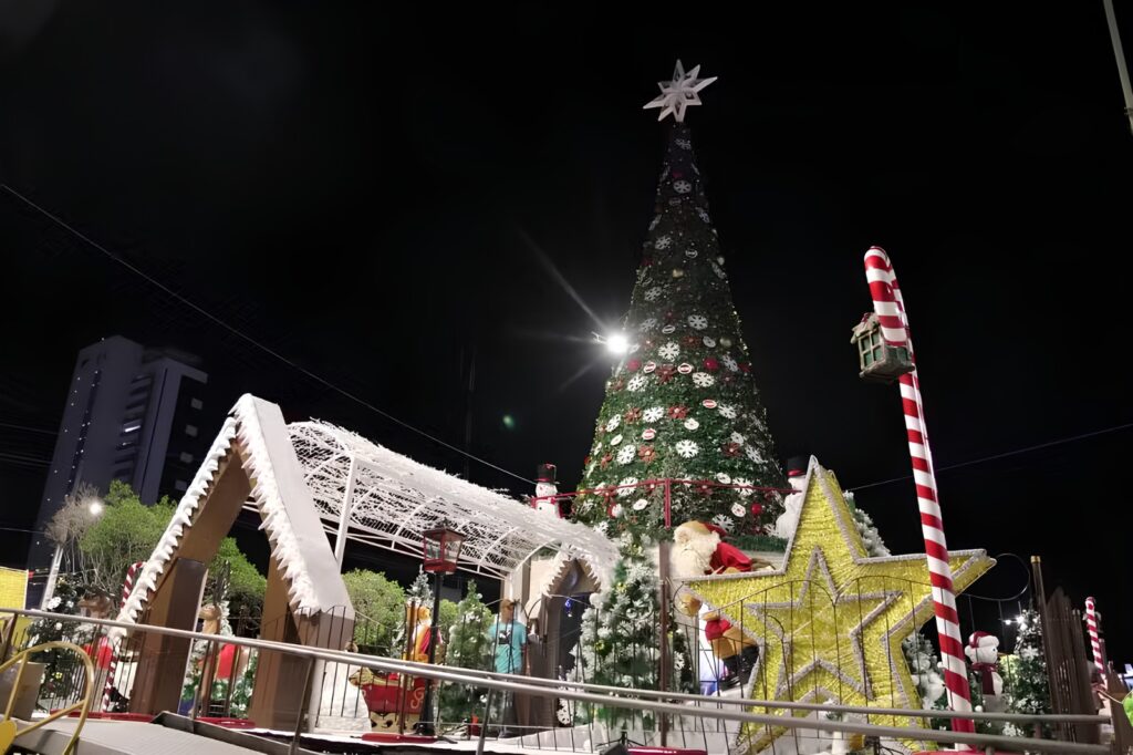 A cidade de Petrolina abriu oficialmente, na noite desta quarta-feira (3), o Natal Luz 2025, que neste ano apresenta o conceito encantador de “Natal na Neve”. O evento ocorreu na Praça Dom Malan e foi iniciado pelo prefeito Simão Durando, reunindo autoridades políticas, comunidade local e visitantes.