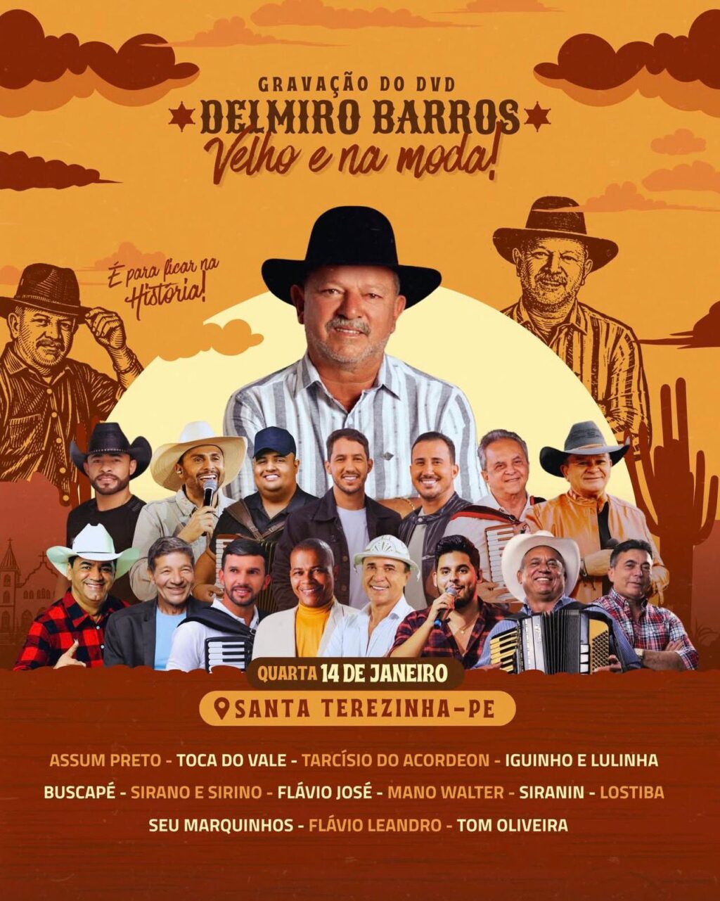 O cantor Delmiro Barros irá gravar o DVD “Velho e Na Moda” nesta quarta-feira (14/01), na cidade de Santa Terezinha-PE.